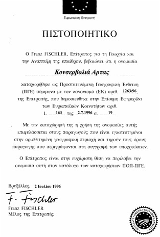 ΠΓΕ Κονσερβολιά Άρτας (αρχικές προδιαφραφές ΕΑΣΑΦ, ΦΕΚ, καταχώρηση WIPO, έγγραφο επιτρόπου ΕΕ)