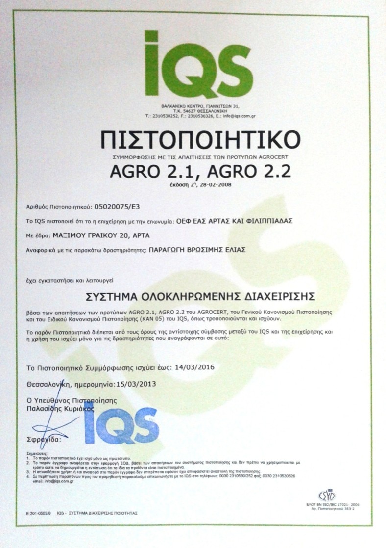 Πιστοποιητικό Ολοκληρωμένης Διαχείρισης 2013 (ισχύς έως 3/2016)